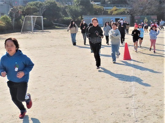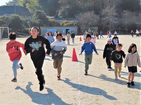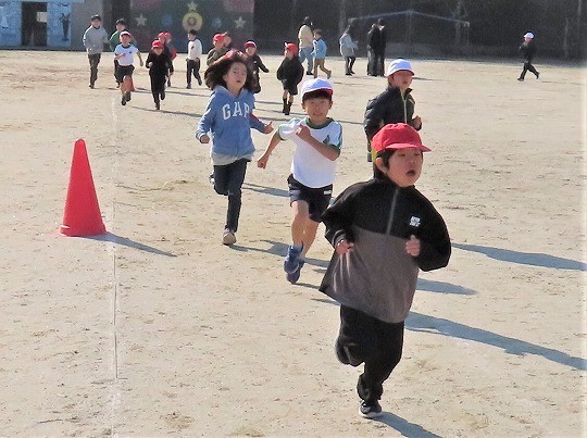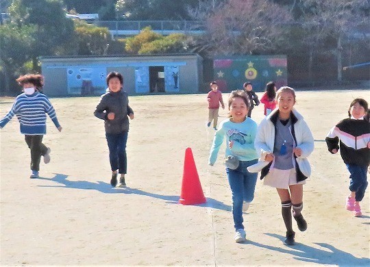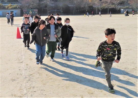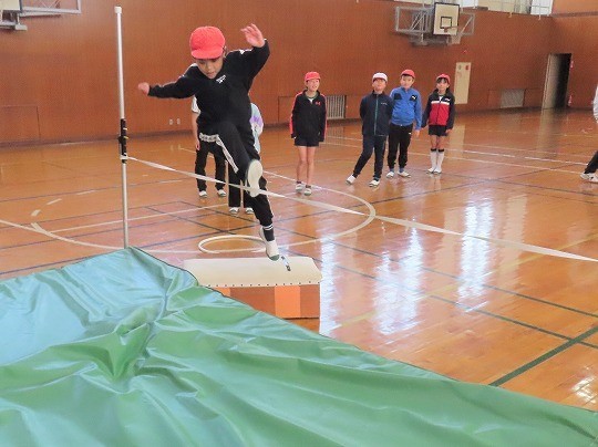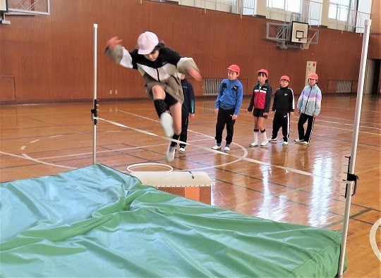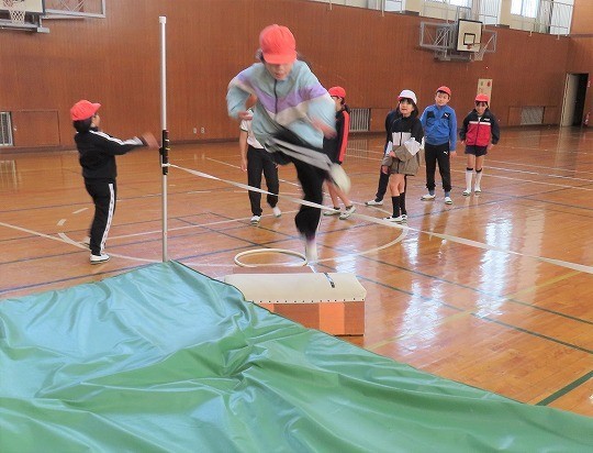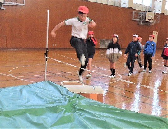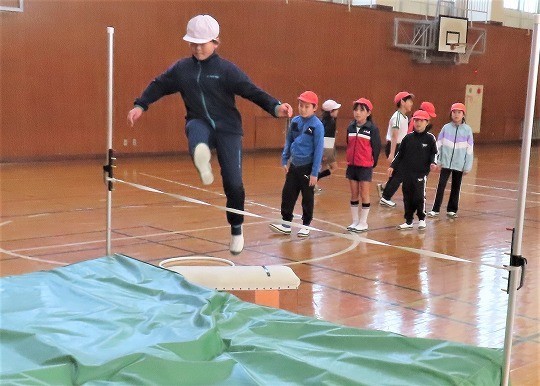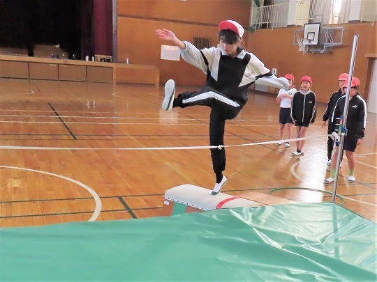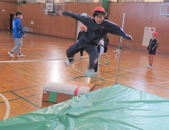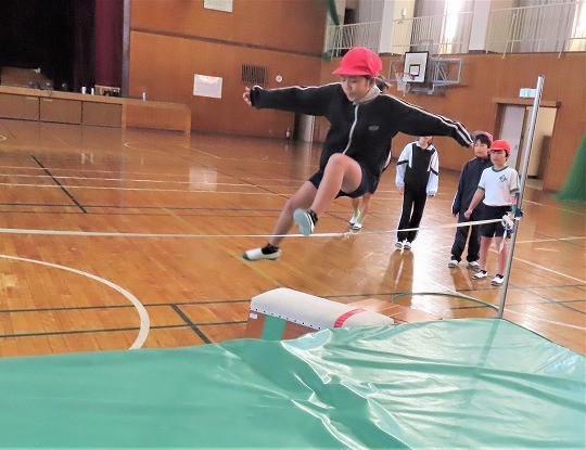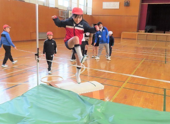 足の運び方を確認しながら、はさみ跳びの練習をしていました。