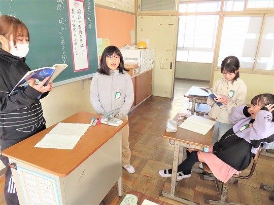 「論語」と「春暁」を音読し、どちらか1つを選んで暗唱していました。