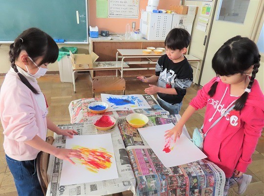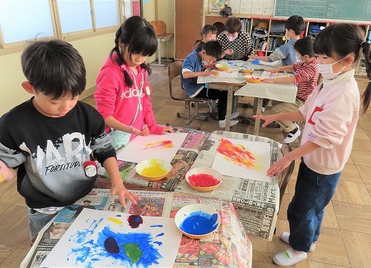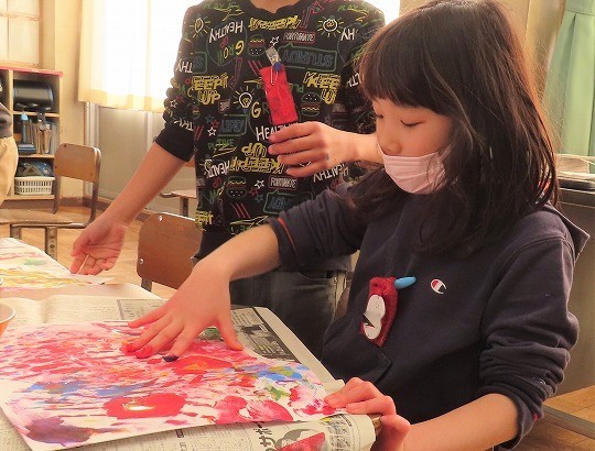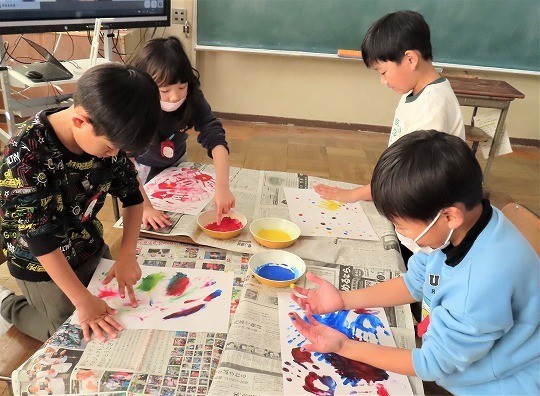 2年生の図工は、「とろとろえのぐで」の作品づくりをしていました。