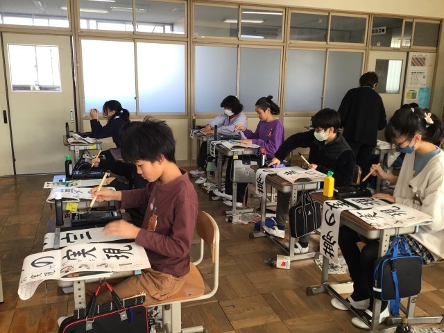 止め、はね、はらいに気を付けながら集中して取り組んでいます。