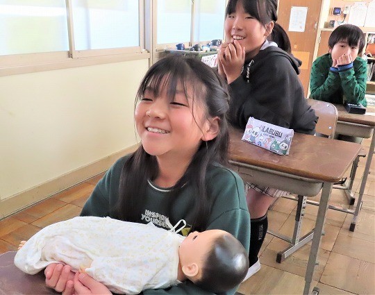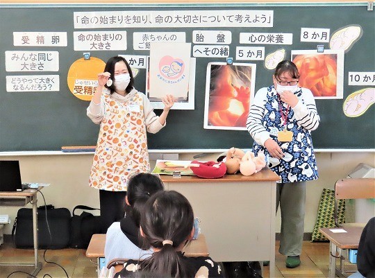 4年生では、保健センターより保健師の玉井さん、助産師の本田さんを講師にお迎えして、「いのちの話」の授業を行いました。