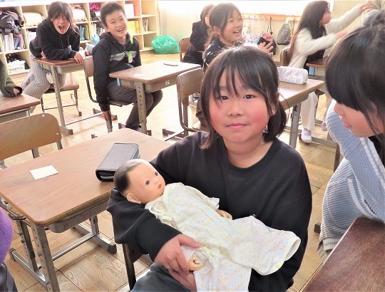 一人一人が3kg程の赤ちゃんの重さも体験させていただきました。