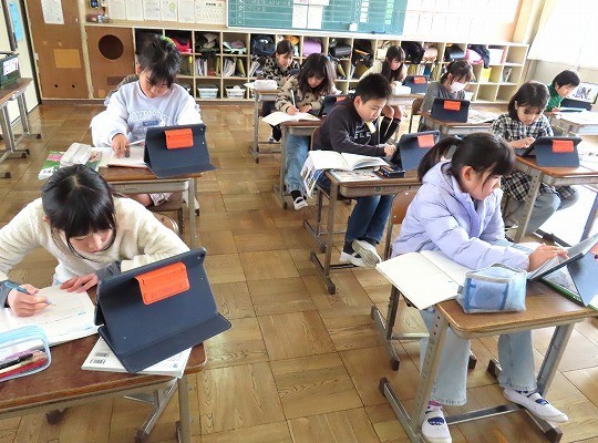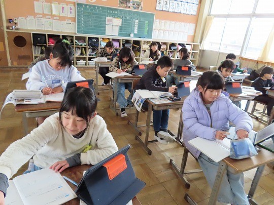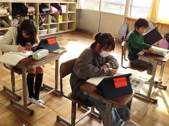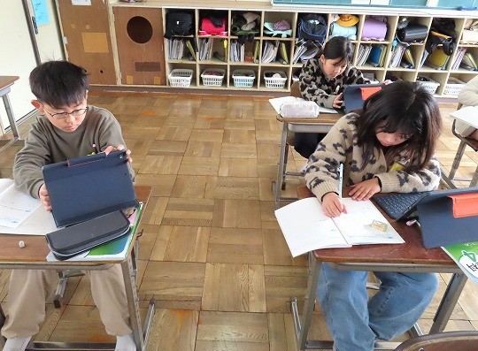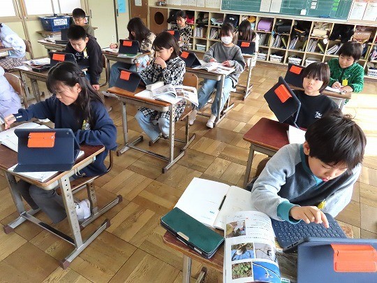 冬になって、昆虫や鳥などが秋の頃からどのように変わっているかをインターネットを使って調べ、わかったことをまとめていました。