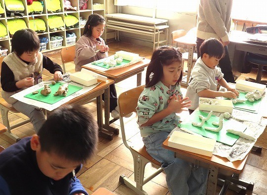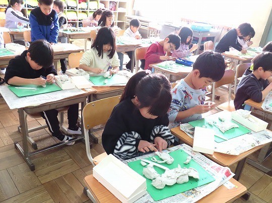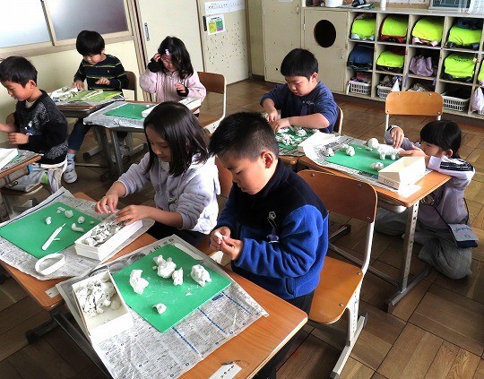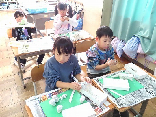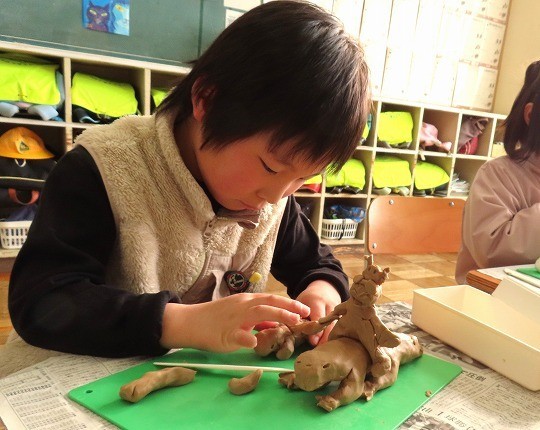 自分と一緒にお出かけしたい生き物を粘土で表現します。