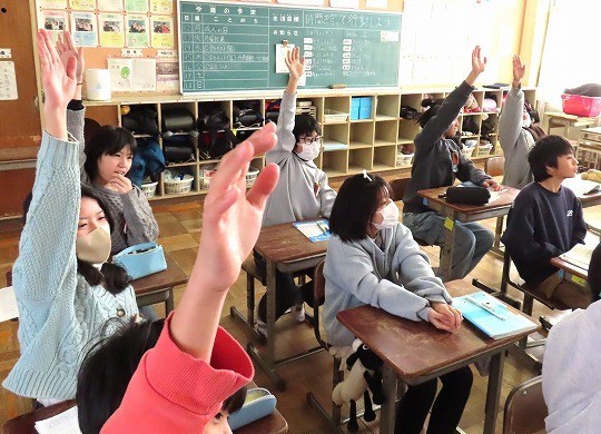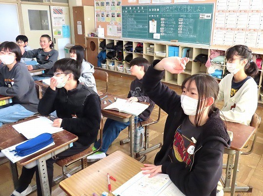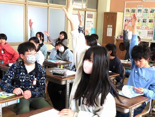 今日は、本文を読み、説明文の最初の段落にはどのようなことが書かれているのか話し合っていました。