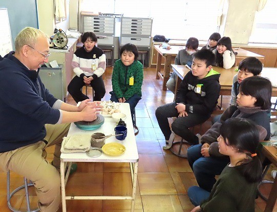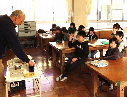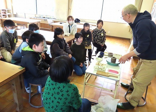 4年生は、ゲストティーチャーに都築先生をお迎えして陶芸教室を行いました。