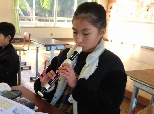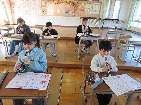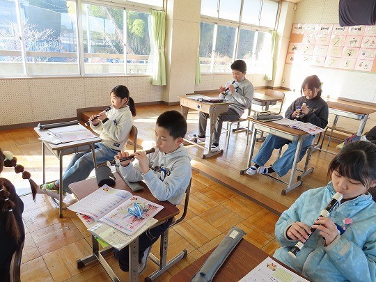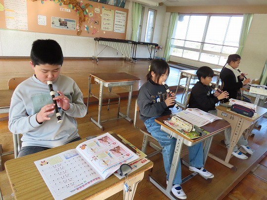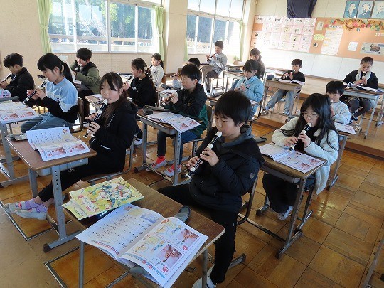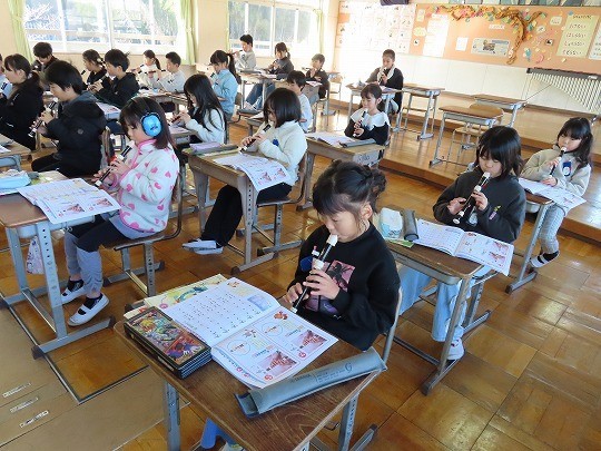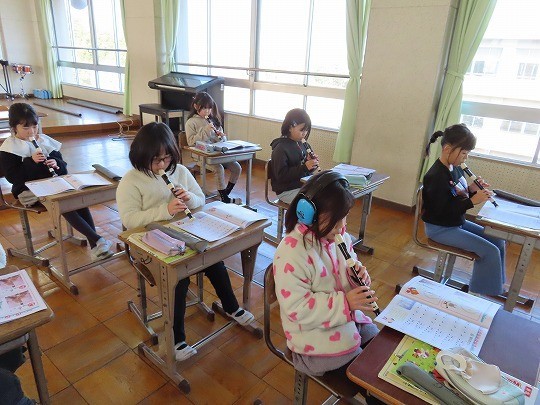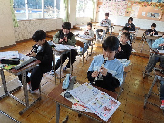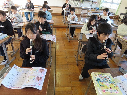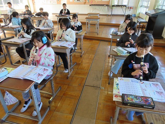 3年生の音楽は、リコーダーの練習をしていました。