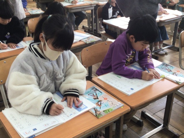 1年生は書写の時間です。