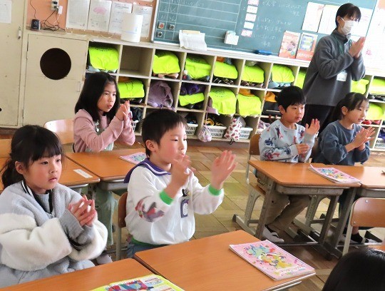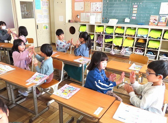 1年生の音楽は、「アルプス一万尺」を学習していました。