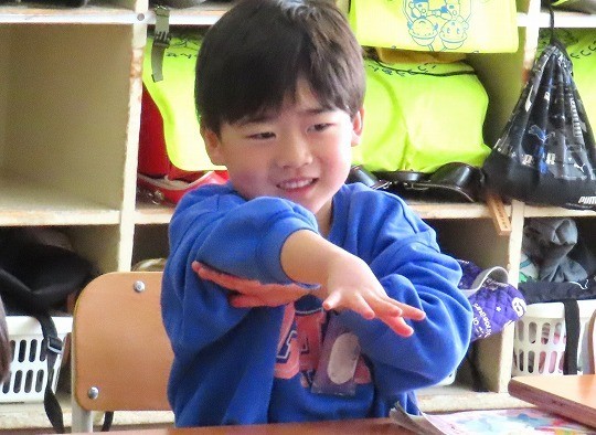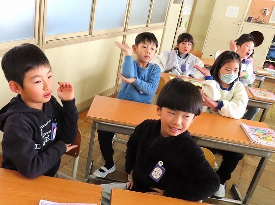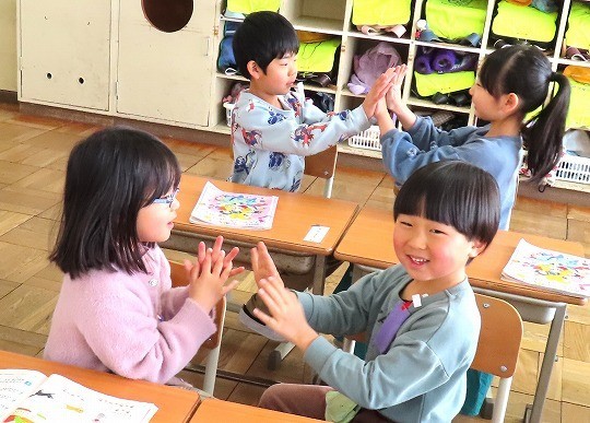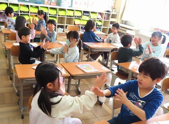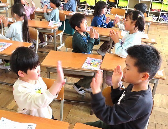 「ぐー、ぺた、ぴん」で姿勢も意識して、2年生になる準備をしていました。