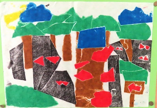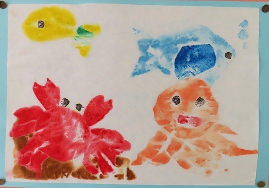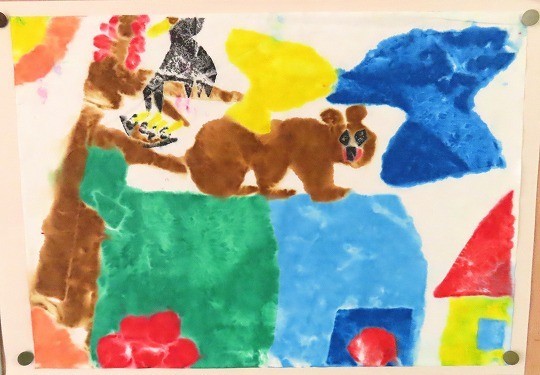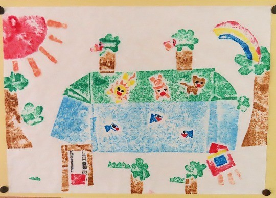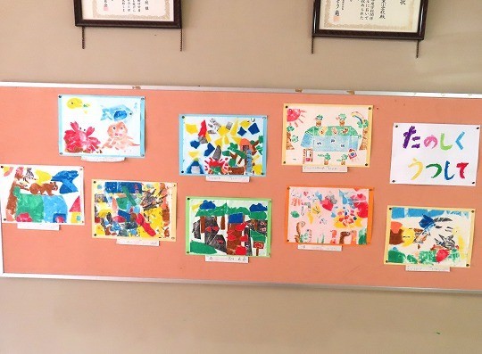 4年生の図工「ほってすって見つけて」の作品展示です。