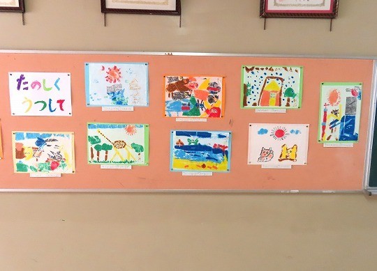 5年生の図工「紙から生まれるすてきな明かり」の展示です。