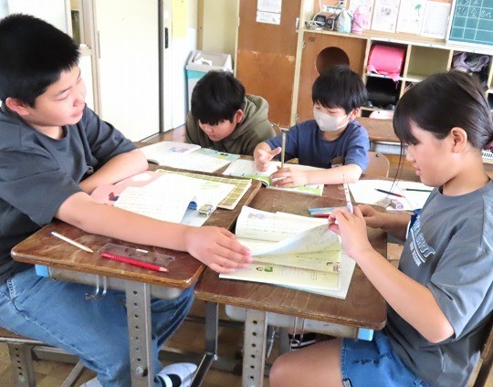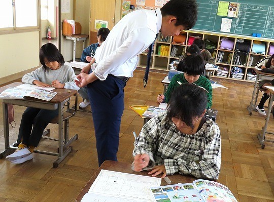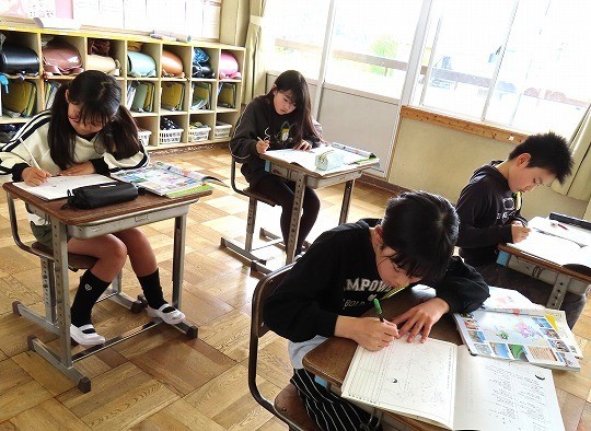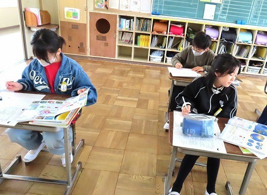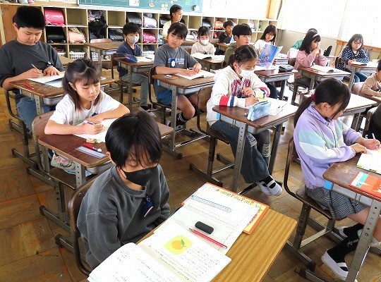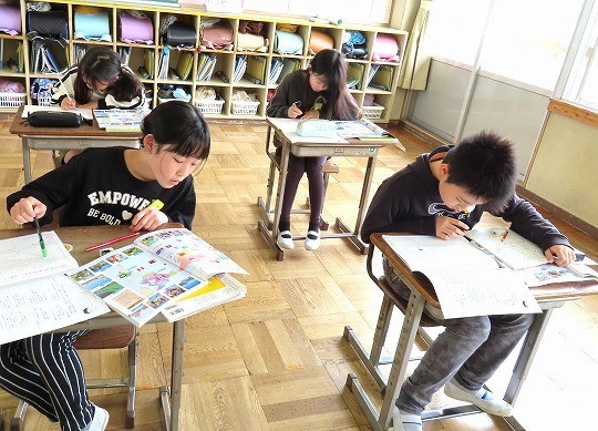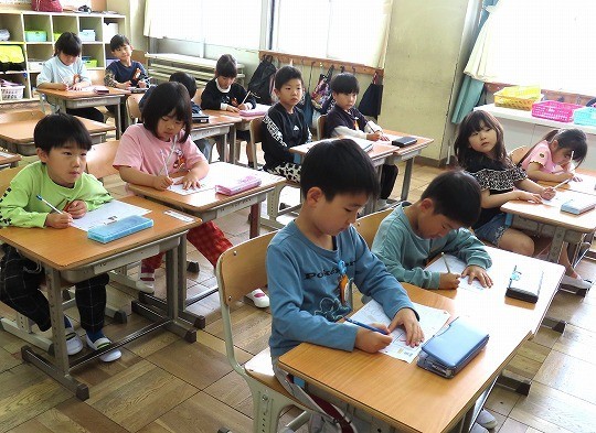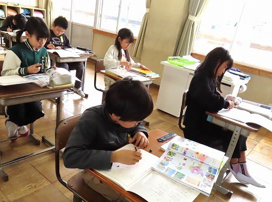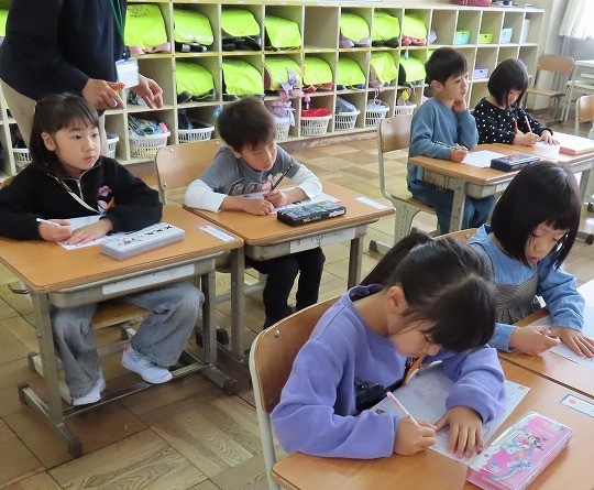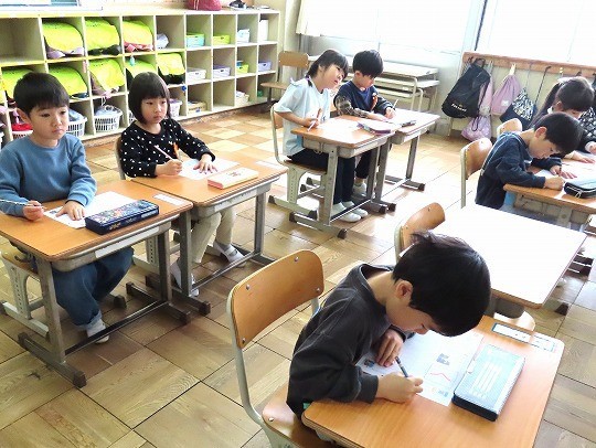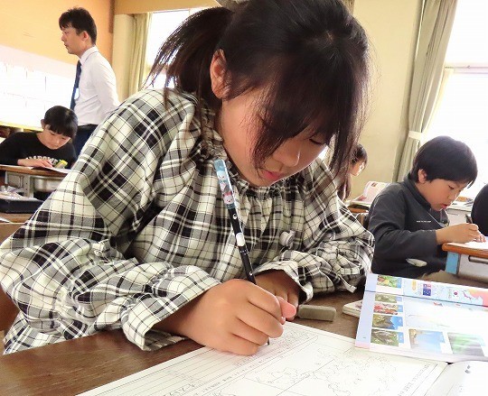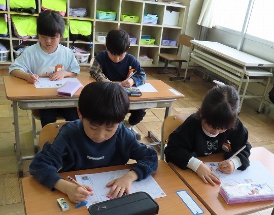 自分が書いた文字とお手本を見比べ、漢字と平仮名とのバランスなど、自分で考えて修正をしていました。