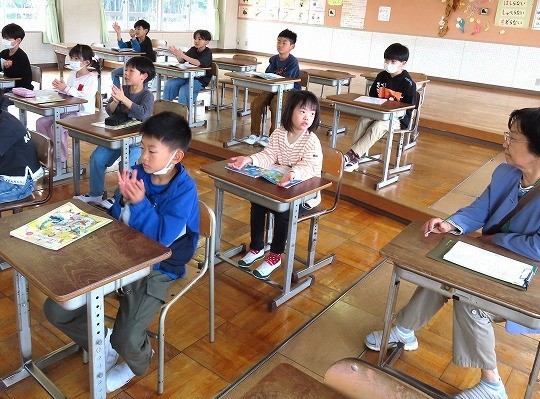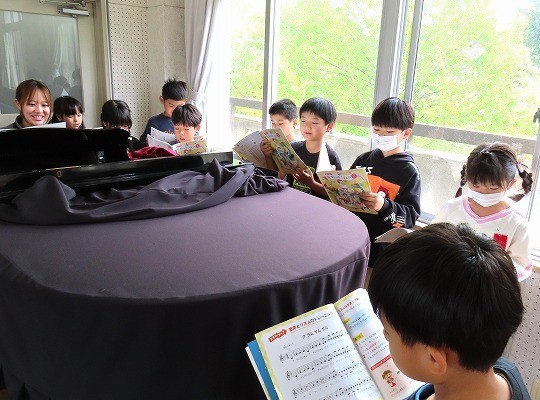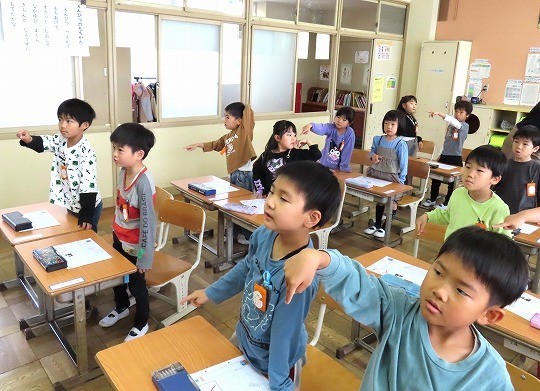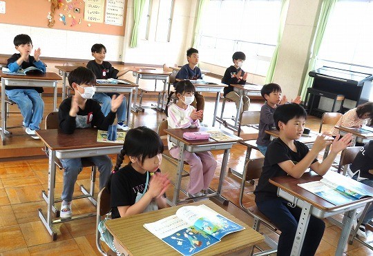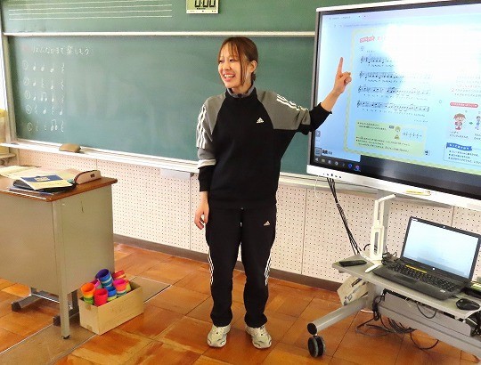 2年生の音楽は、「強さやはやさをかんじて 体をうごかそう」を学習していました。