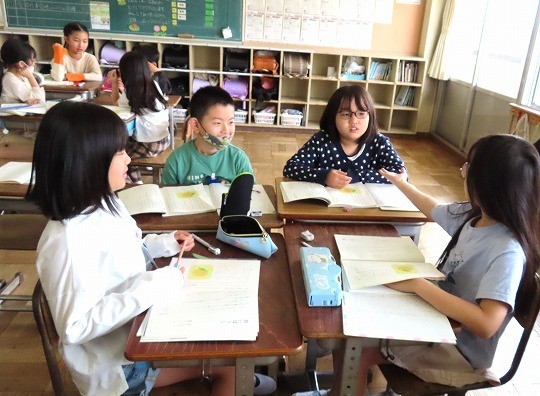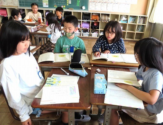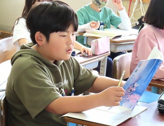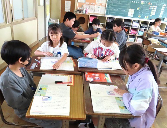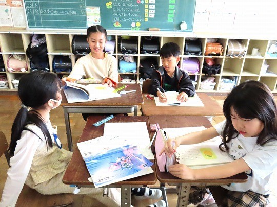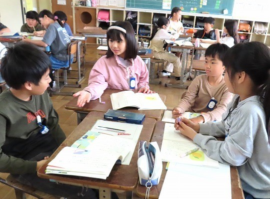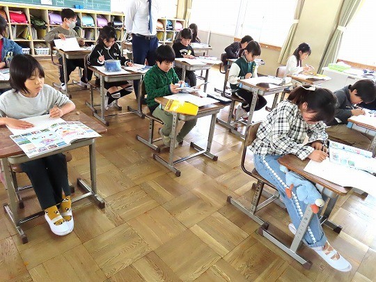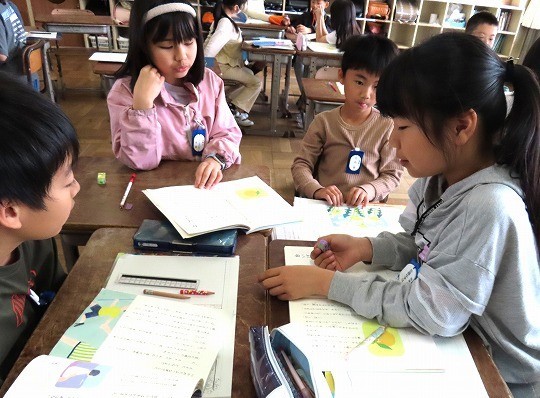 「松井さん」の人柄が感じられる部分に各自が波線を引き、グループで人物像を話し合っていました。