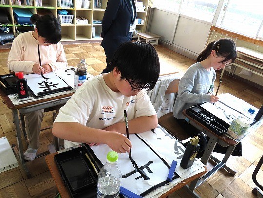 まずは、腕の運動、筆の持ち方や姿勢、墨をつけずに書く練習など、基礎的なことを大切に進めていました。