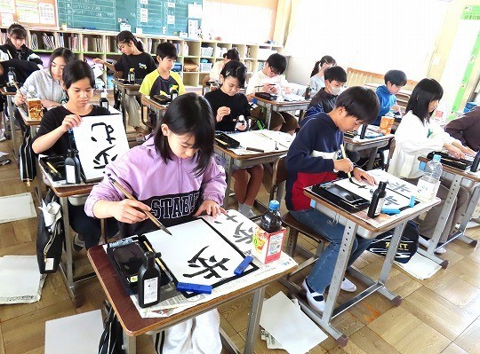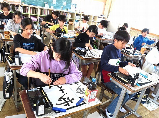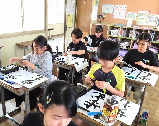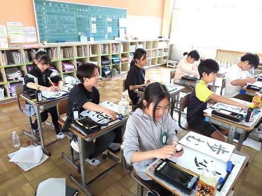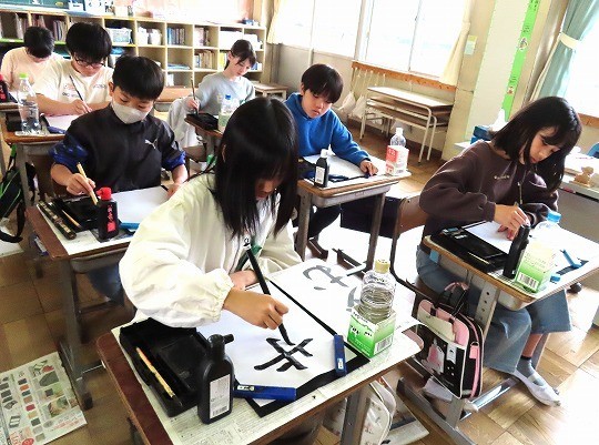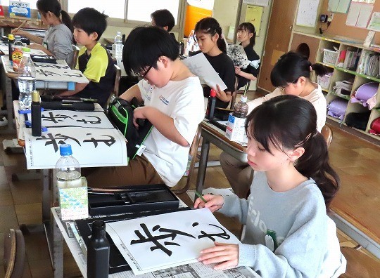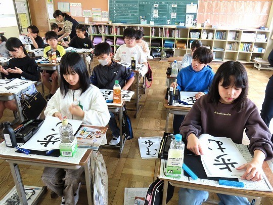 6年生の書写は、毛筆で「歩む」を練習していました。