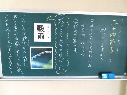 1年生廊下の黒板です。