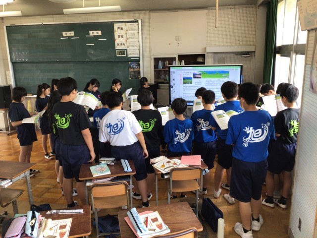 合唱をしました。みんなで歌うよさを味わってほしいですね。音楽の掲示物のデザインも工夫が凝らしてあります。