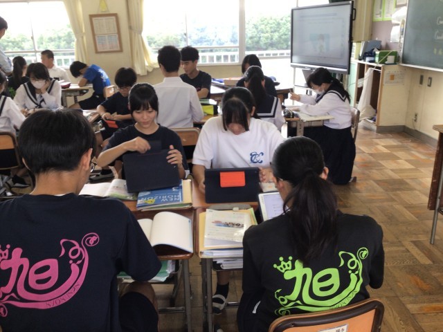 授業の振り返りをタブレット端末に入力していました。慣れた手つきです。