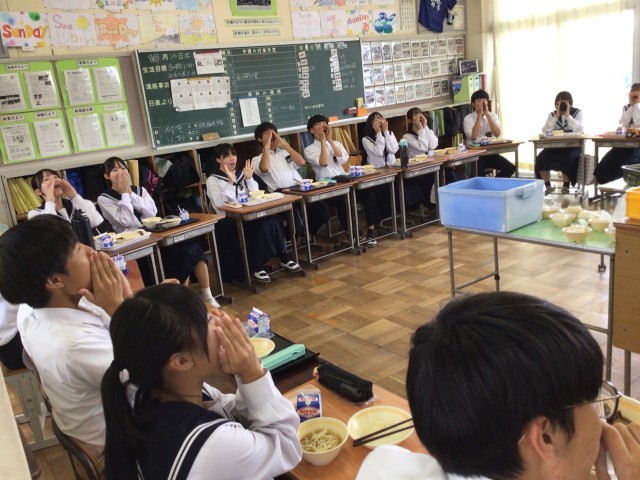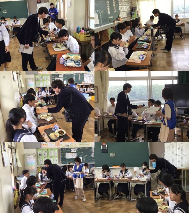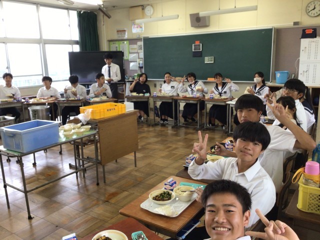 給食の時間に、知多メディアスのラジオ中継がありました。今回は、体育祭で優勝した青団の3年生です。生放送でしたが、さすが3年生!上手に受け答えをしていました。クラスのよい雰囲気も伝わったと思います。スタッフの方も、「元気いっぱいですね!」と喜んでくださいました。