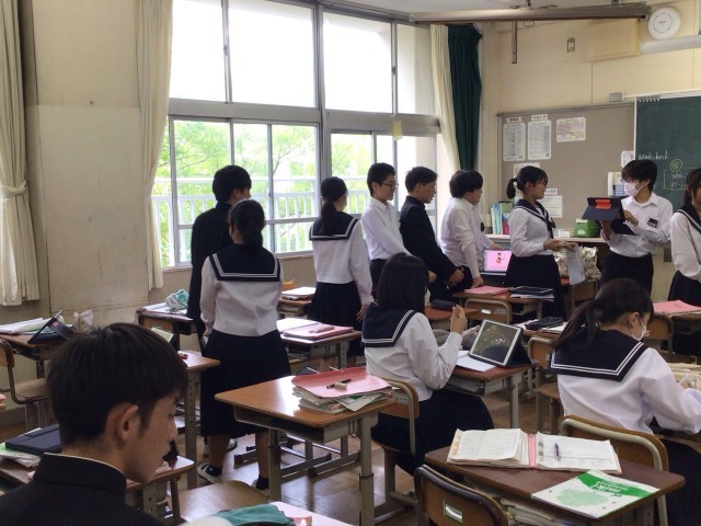 とても賑やかな声が廊下まで聞こえてきたので、何をしているのかなと思ったら、必死に暗記をして先生にその成果を聞いてもらっていました。頭の柔らかい中学生なら何でも頭に入る時期ですね。