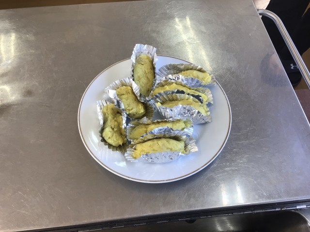 今回は「スイートポテト」をつくりました。甘さも程よく、とても美味しくできました。
