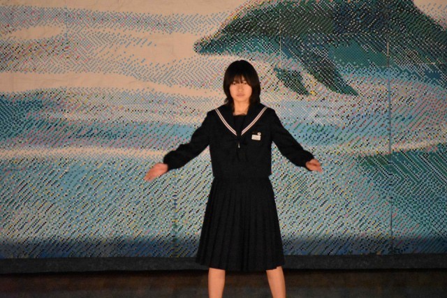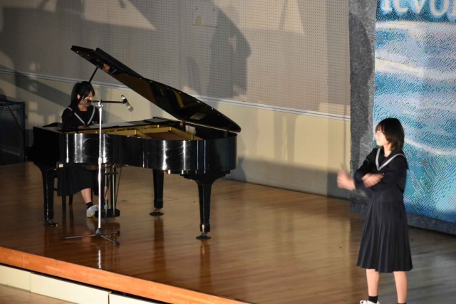声出しを兼ねて、校歌斉唱です。最近は、オンラインの式が多かったので、みんなで校歌を歌えるのはうれしいです。