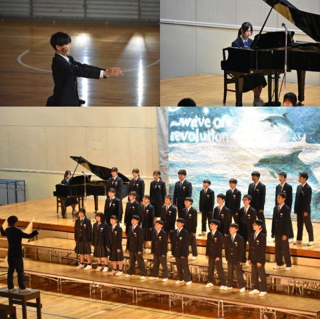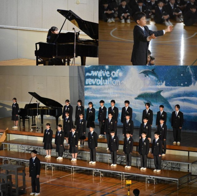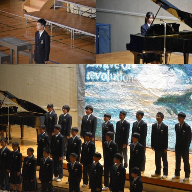 1年生の合唱。初めての合唱祭。元気のよさが1年生の特徴です。