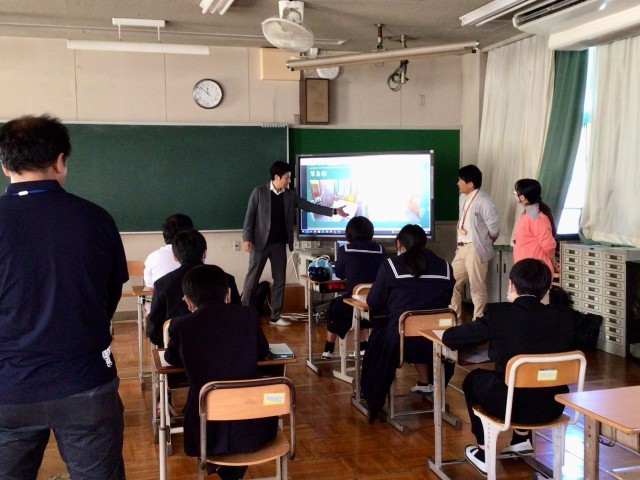ちた福寿園を訪問するにあたり、施設がどんなところなのか、どんな人が働いているのか、高齢者はどんな生活をしているのかなどを事前学習しました。旭南中の卒業生が話をしてくれたこともあり、よいキャリア教育にもなりました。