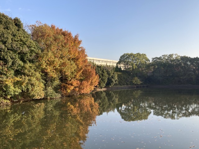 今日までは暖かいとのことで、登校時もそんなに寒さは気にならなかったです。地域の方々とたくさん挨拶を交わすことができました。学校の前の池の紅葉もきれいです。どこかに移動したのか、いつのまにか鳥の姿が見えなくなりました。