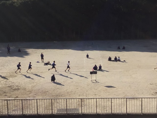冬といえば持久走の季節です。小学生のときは毎日のように休み時間に走っていたと思いますが、中学生は体育の時間くらいかもしれません。走る人も頑張っていましたが、タイムを測る人たちも大きな声で声援をおくって励ましていました。いい光景です。