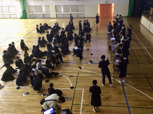 体育館で行うと聞いていたので、賑やかにスポーツをしているのかと思ったら、楽しそうなクイズで知的に盛り上がっていました。準備をしてくれた人たちの期待通り、楽しんでくれていたようです。