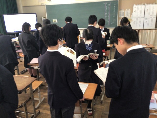 グループ音読をしました。教材は『少年の日の思い出』です。多くの人が知っている不朽の名作ですね。