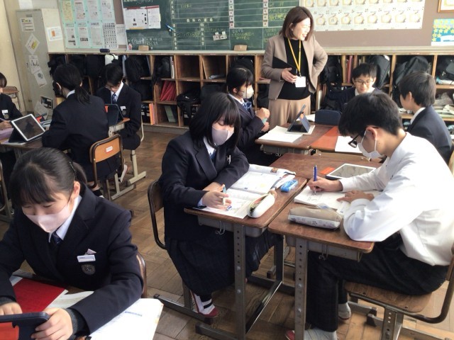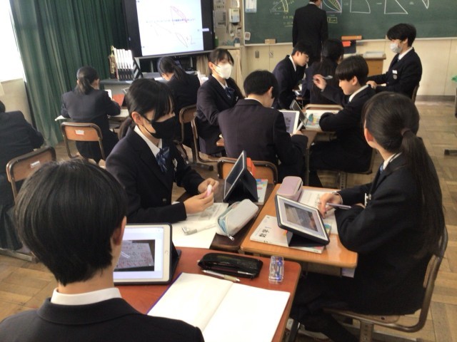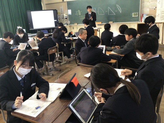 グループで課題に取り組みました。小学校の算数でも同じ問題をやりましたが、中学生的な解き方を考えてみたいですね。