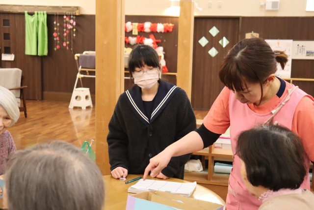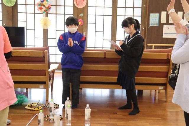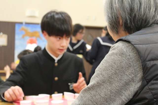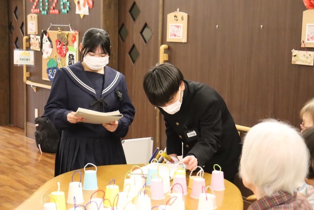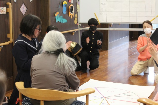 福寿園を訪問し、それぞれが準備してきたゲームで利用者の方と交流しました。どのグループも笑顔で楽しく交流することができました。次回は2月24日に、箏とハンドベルの演奏をしに訪問します。