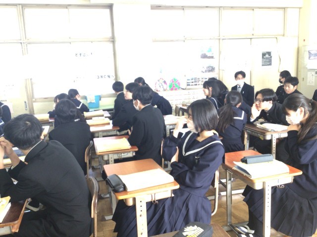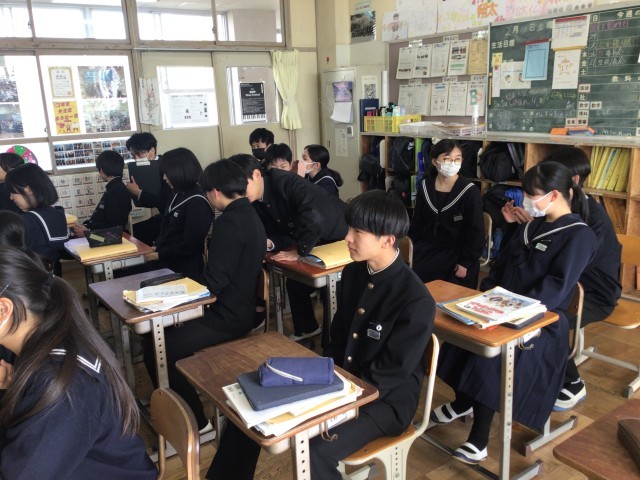 ALTの最後の授業でした。伝言ゲームです。生徒から「先生も入りますか?」と誘われましたが、横で楽しく参観させてもらいました。