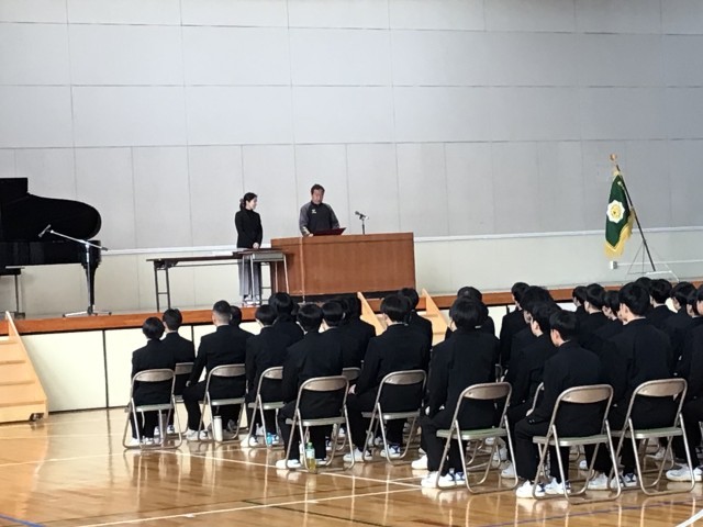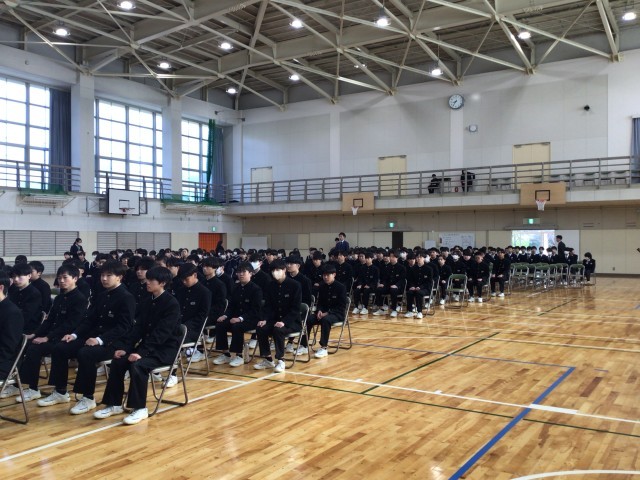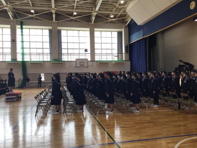 明日の卒業式本番に向けて、全校生徒と職員で最後の総練習です。明日は必ずよい式にしましょう!