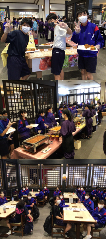 忍者キングダムに到着しました。お腹がすきましたね。お待ちかねのバイキング昼食です。