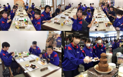 何度もおかわりする生徒もいました。今朝は早かったので、ペコペコだったのかもしれません。これからキングダムを楽しみます。