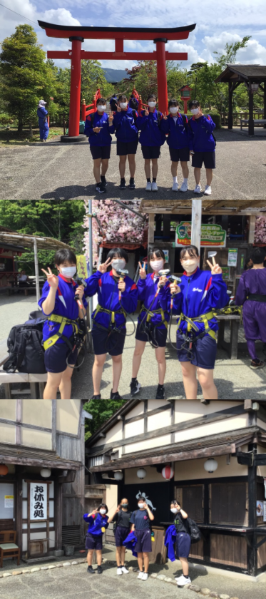 アスレチック「忍者の森アドベンチャー」に挑戦する生徒多数。