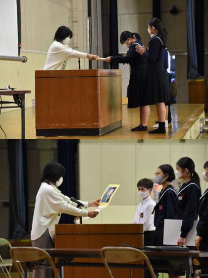 多くの表彰がありました。人数が多いため、代表者に登壇してもらいましたが、改めて学校便り12月号で受賞者をお知らせします。多方面における生徒の活躍が認められ、嬉しく思います。