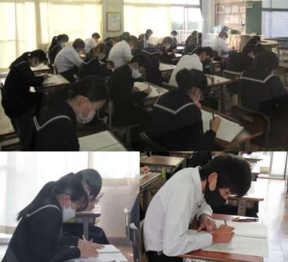 定期テストが始まりました。入試制度の変更に伴い、3年生は中学校生活最後の定期テストとなります。2日間、全力で挑みましょう。君たちならできる!