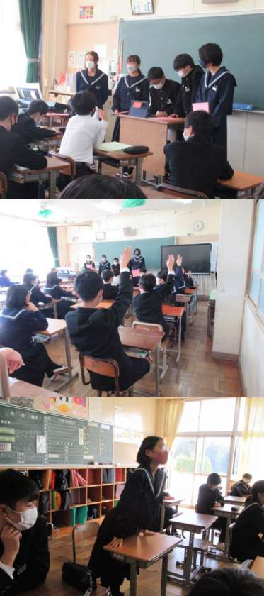 「3年生を送る会」に向けて話し合いをしていました。内容は秘密ですが、アイデアを活発に出し合っていました。新たな財産をたくさん残してくれた3年生に、感謝の意を伝えるためにがんばっています。