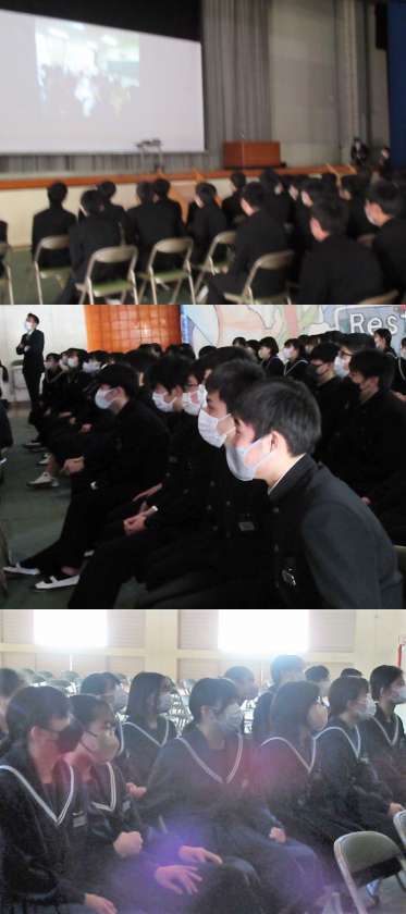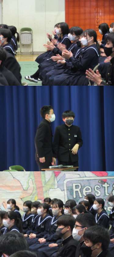 最後の学年集会。3年間の思い出の映像を食い入るように観ています。1年生の頃ってこんなに幼い感じだったんですね。