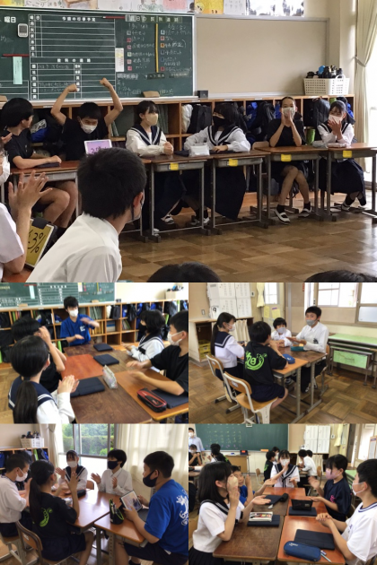 2、3年生は宿泊行事に向けて真っしぐらですが、1年生は、、、学級レクでとても盛り上がっていました。忍者になりきってリズムゲームです。