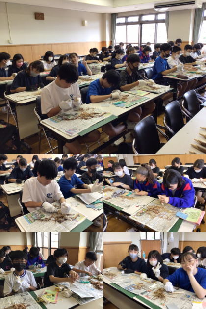 ここの研修室では、木のペン作りに挑戦しています。ゴボウの皮を剥くように木の皮を削っています。