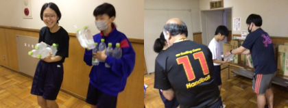 食後に水が配られました。部屋長さんが人数分を抱えています。就寝までの水分補給です。