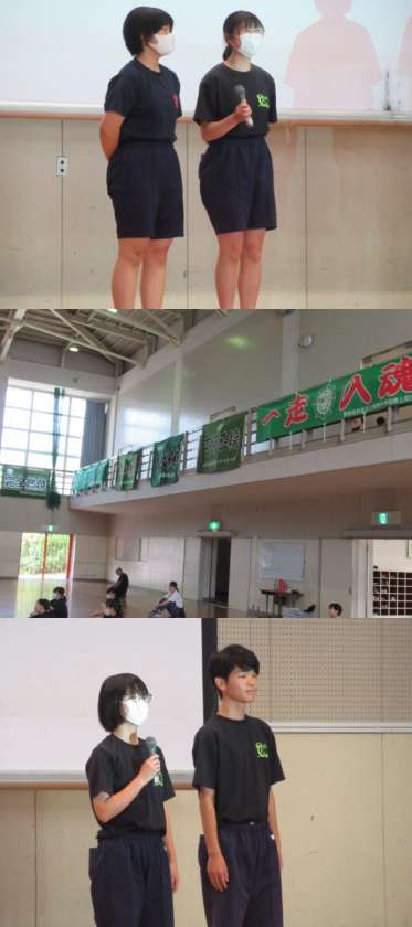 7月に入ると部活動の大会が目白押しです。生徒集会で、陸上部と吹奏楽部の代表がその意気込みを語ってくれました。力いっぱいがんばってください。