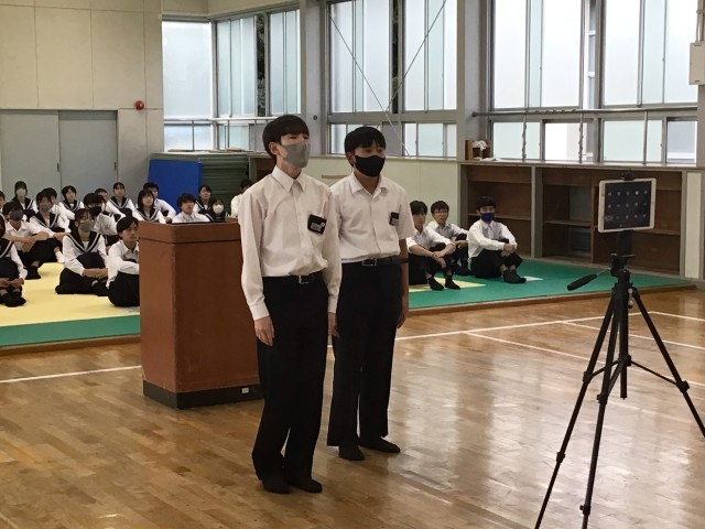 部活動の報告です。男女テニス部と卓球部から報告がありました。次につなげていこうという意欲が伝わりました。